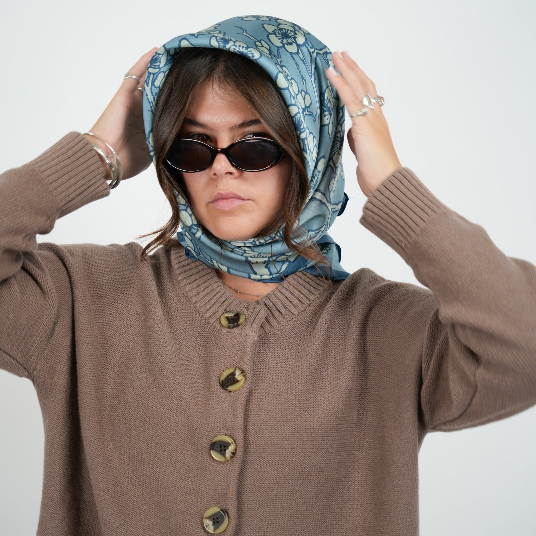 Spring captured in silk, our ‘Blossom’ silky square scarf lets cherry blossom branches dance across a slate blue background, with cream and deep blue tones that capture fleeting full-bloom magic. Understated and natural, it’s quietly iconic. A print that makes you pause, notice beauty, and savor the moment just like cherry blossoms do.