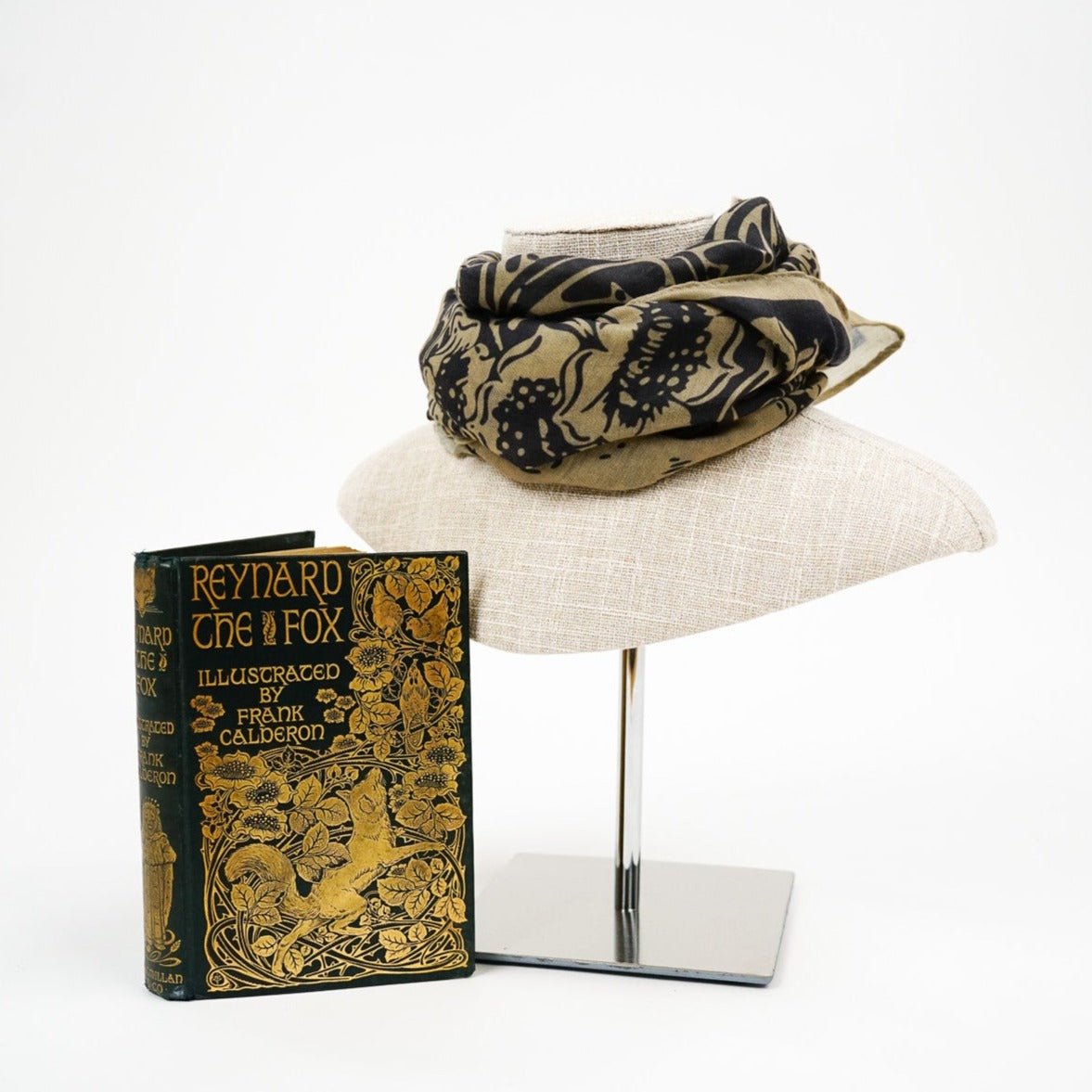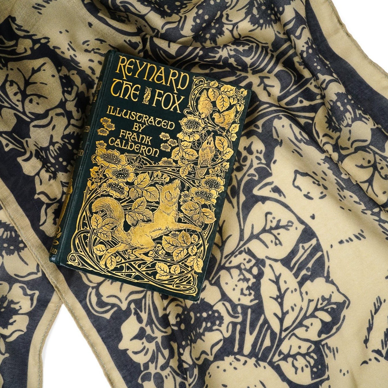 Our best-selling bandana design is transformed into a scarf with “Brambles”. A cunning fox weaves his way around dark underbrush, accented by beautiful beige flowers. Find out why customers have been raving about this iconic design.