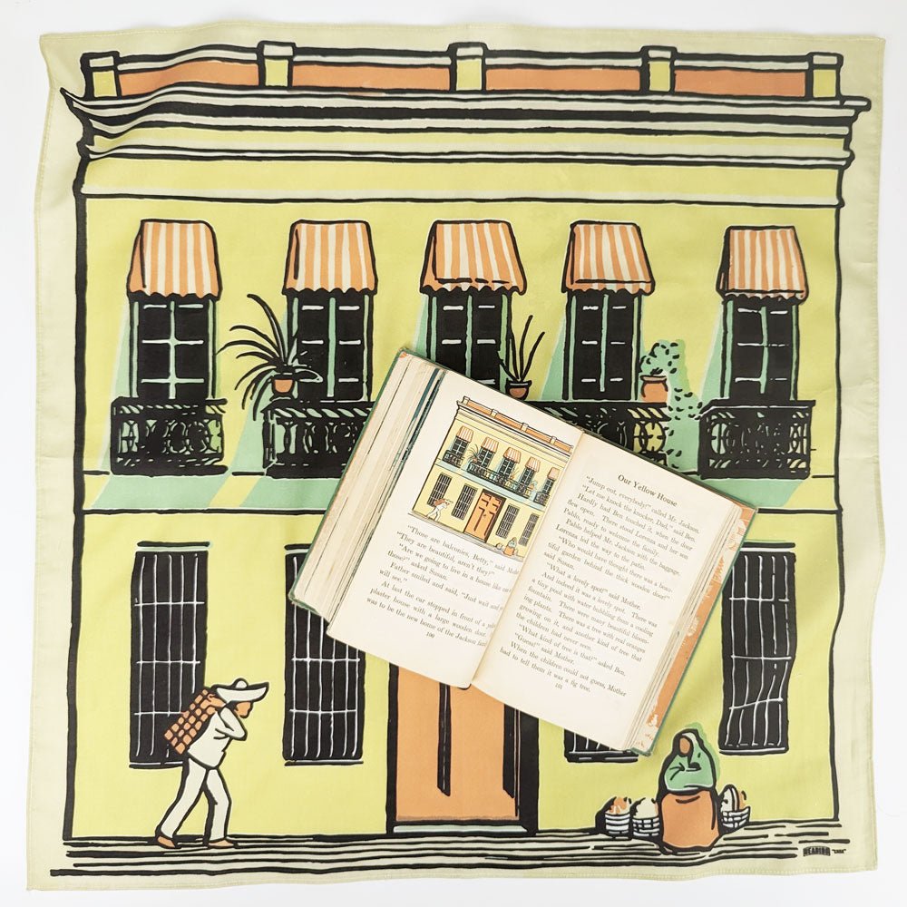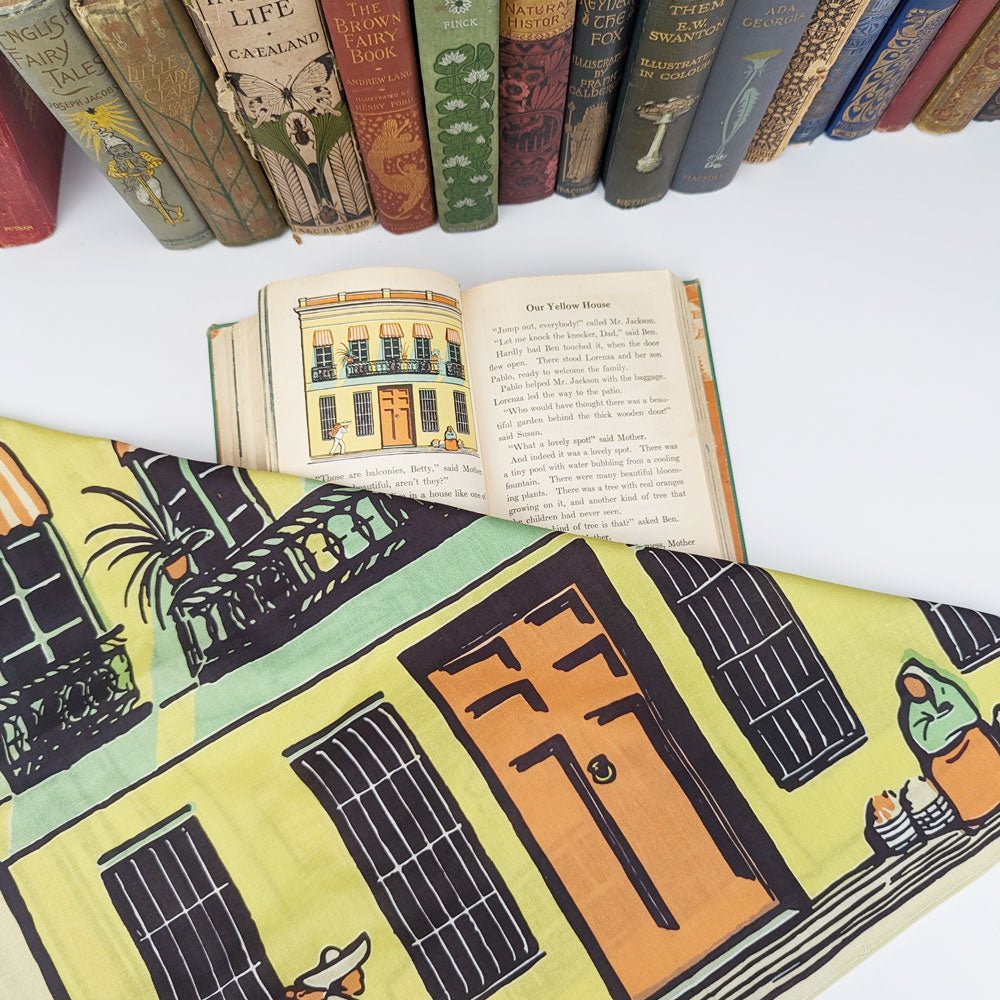 A serene scene unfolds in a Mexican village by the sea with "Casa". Welcoming yellow tones and a unique border make this design truly pop.
